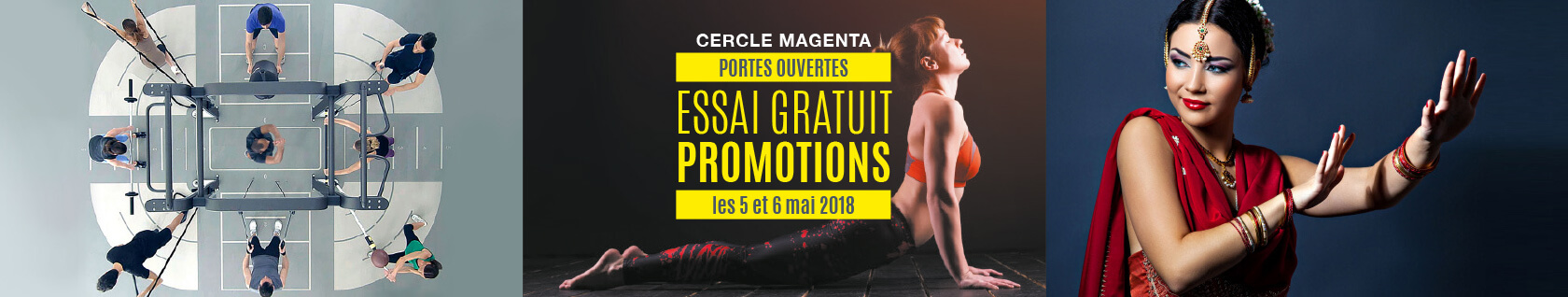 Ce club de sport conçu pour être propice à la détente est équipé de machines cardio-training et musculation Technogym dernière génération pour un confort d’entrainement optimal. Il propose également un large panel d’activités en cours collectifs (fitness, danse, relaxation, renforcement musculaire….), animés par des coachs sportifs diplômés. Séance découverte offerte ! Notre équipe d’experts du sport vous attend les 5 et 6 Mai pour profiter de nos nombreuses activités, et d’une promotion exceptionnelle pendant ces 2 jours. Consultez le programme ci-dessous et inscrivez-vous pour une séance d’essai gratuite ou une visite découverte : – par téléphone (tél: 01 42 80 39 10)